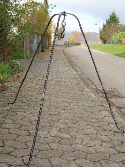 Hier noch 4 S-Haken, mit denen ich ggf. den Topf über dem Feuer hoch- und herunterlassen kann. Dazu gibt es noch eine Kesselkette, von der ich im Moment leider noch kein Bild habe und mein Herd ist komplett.