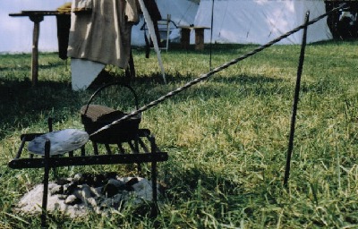 Als ich bei Helstafir (siehe unter Links!) stöberte, fand ich dann diesen Grillrost, der mittels vier variabel einschlagbaren Erdheringen über das Feuer gehängt werden kann. Solche Roste sind seit dem Frühmittelalter bis ins 18te Jahrhundert hinein benutzt worden.