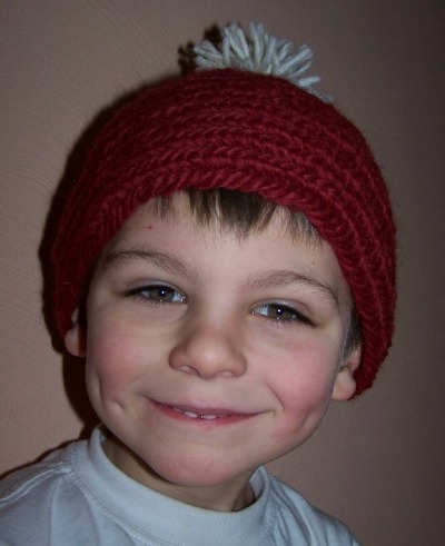 Und weil Weihnachten nahte und ich endlich mal was nadeln wollte, was auch getragen wurde, habe ich diese "Nikolaus- mütze" für meinen Sohn gewichtelt. Nett anzu- schauen, aber im Kindergarten wird das Teil nicht ange- zogen, das sei doof wurde mir mit der Logik eines Fünf- jährigen erklärt ...